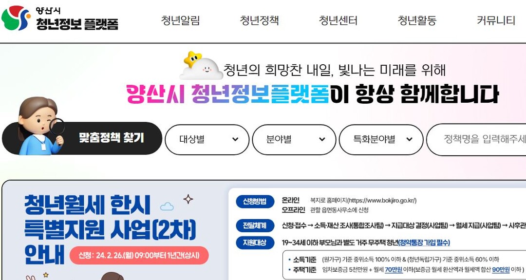 양산시 관계자는 "이번 플랫폼이 단순 정보제공을 넘어 청년들의 소통공간으로 자리잡아, 지역 청년들을 위한 정보 제공과 정책 참여 활성화에 크게 이바지할 것으로 기대한다"고 전했다.