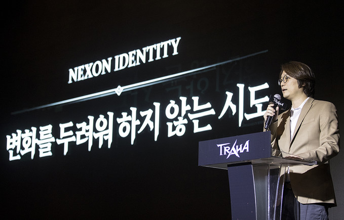 박재민 넥슨코리아 모바일사업본부장이 14일 오전 서울 중구 웨스틴조선호텔 그랜드볼룸에서 열린 넥슨의 신작 모바일 MMORPG '트라하(TRAHA)'의 미디어 쇼케이스에서 인사말을 하고 있다.