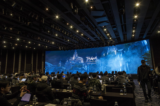 14일 오전 서울 중구 웨스틴조선호텔 그랜드볼룸에서 넥슨의 신작 모바일 MMORPG '트라하(TRAHA)'의 미디어 쇼케이스가 열리고 있다.