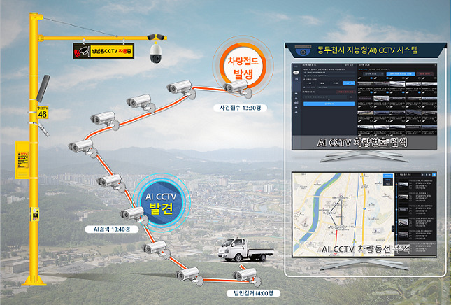 | ▲동두천시 통합관제센터 AI CCTV 도난차량 추적 개념도 [동두천시 제공] |