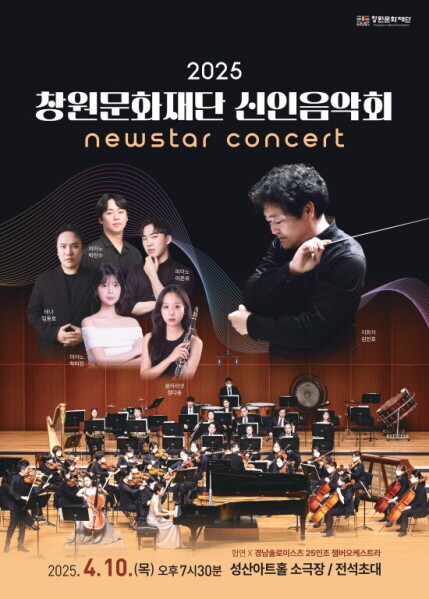 경남 창원문화재단(대표이사 조영파)은 4월 10일 오후 7시30분 성산아트홀 소극장에서 '2025 신인음악회'를 개최한다고 20일 밝혔다.