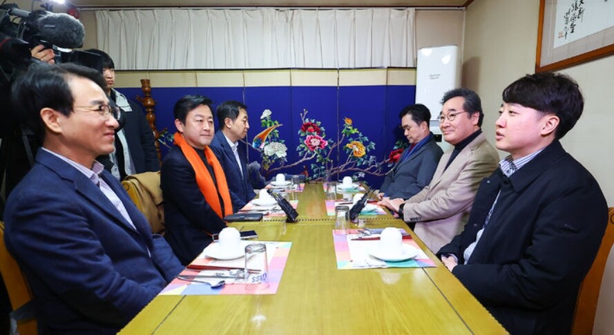 | ▲ 개혁신당 공동대표를 비롯한 임시 지도부가 지난 11일 서울 종로구의 한식당에서 열린 첫 회의에서 얘기를 나누고 있다. [뉴시스] |
