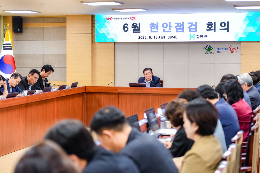 경남 조근제 함안군수는 16일 군청 회의실에서 열린 현안점검회의에서 온라인 소통 강화 노력을 주문하며 7월 조직개편을 예고했다.