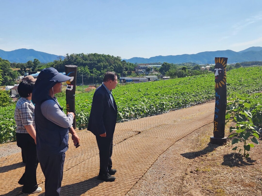 | ▲ 조근제 군수가 강주해바라기축제 현장을 직접 점검하고 있다. [함안군 제공] |