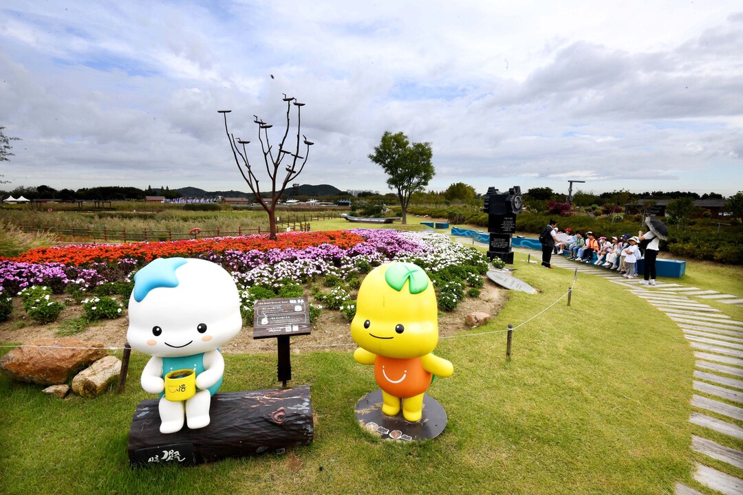 ▲ 시흥갯골생태공원 조형물과 꽃.  [시흥시 제공]