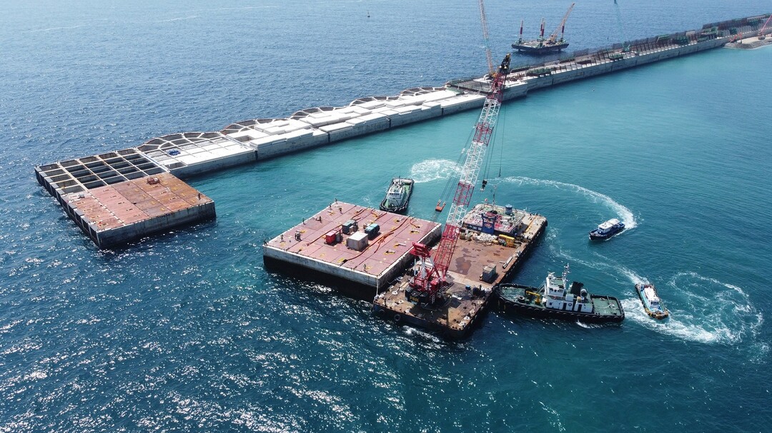 첫 번째 케이슨을 설치한 2022년 5월 이후 약 3년 만이다. 케이슨은 바다에 가라앉혀 항만 안벽이나 방파제 등으로 사용되는 대형 콘크리트 구조물이다.