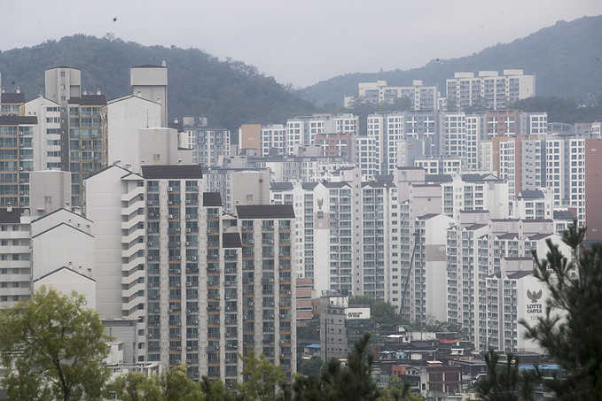 국토교통부가 10월부터 분양가 상한제 적용 대상을 투기과열지구로 지정된 민간택지로 확대하고, 전매제한기간은 최대 10년까지 늘어나며, 재건축·재개발 주택에 대한 적용 시점은 '최초 입주자 모집승인을 신청한 단지'로 일원화하는 내용이 담긴 주택법 시행령을 12일 발표했다. 분양가 상한제는 공동주택의 분양가격을 산정할 때 건축비에 택지비를 더해 분양가를 산정해 그 가격 이하로 분양하게 하는 규제 제도를 말한다. 사진은 12일 오전 서울시내 아파트 모습.