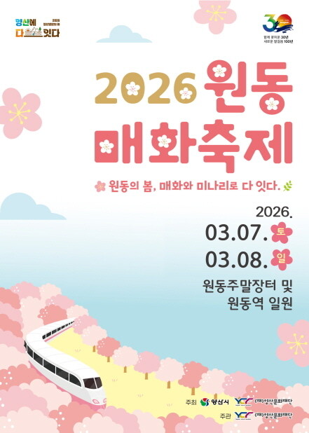 경남 양산문화재단(이사장 나동연 시장)은 당초 3월 14~15일 예정돼 있던 '2026 원동매화축제' 일정을 같은 달 7~8일로 앞당겨 개최한다고 24일 밝혔다.