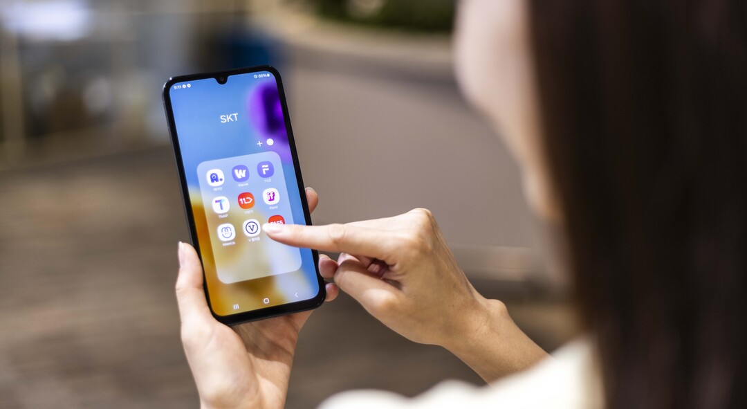 ▲ SK텔레콤이 단독 출시하는 30만 원대 가성비폰 '갤럭시 와이드7'를 사용하는 모습. [SK텔레콤 제공]