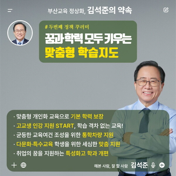 김석준 부산교육감 후보 "모든 학생 꿈·학력 키우는 '공교육 찬스' 제공"