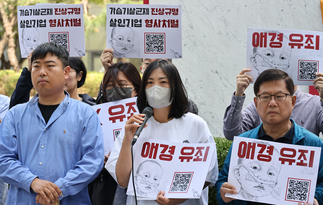 | ▲ 4일 오전 서울시 종로구 SK서린빌딩 앞에서 가습기살균제 피해자 가족이 가습기살균제를 제조·판매한 기업들에 대한 항소심에서 유죄를 촉구하는 발언을 하고 있다.[이상훈 선임기자] |