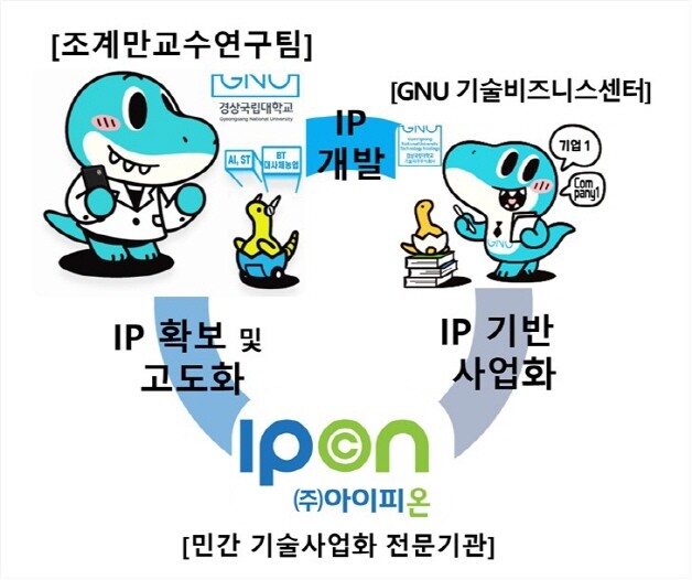 이 사업에는 조계만 교수 연구팀, 아이피온 김찬주 변리사 등 5명 이상 참여한다. 경상국립대 기술비즈니스센터는 연구팀과 민간 사업화 전문기관의 허브 역할을 맡게 된다.