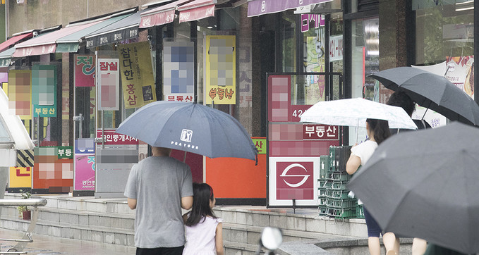 국토교통부가 10월부터 분양가 상한제 적용 대상을 투기과열지구로 지정된 민간택지로 확대하고, 전매제한기간은 최대 10년까지 늘어나며, 재건축·재개발 주택에 대한 적용 시점은 '최초 입주자 모집승인을 신청한 단지'로 일원화하는 내용이 담긴 주택법 시행령을 12일 발표했다. 분양가 상한제는 공동주택의 분양가격을 산정할 때 건축비에 택지비를 더해 분양가를 산정해 그 가격 이하로 분양하게 하는 규제 제도를 말한다. 사진은 12일 오전 서울시내 부동산 중개업소 밀집지역의 모습.
