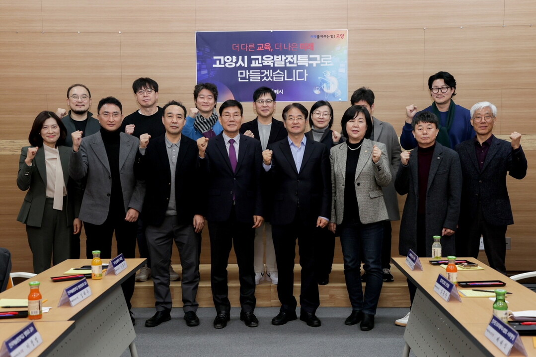 | ▲지난 1월 간담회에 참석한 고양시 교육발전특구자문위원들이 결의를 다지고 있다. [고양시 제공] |