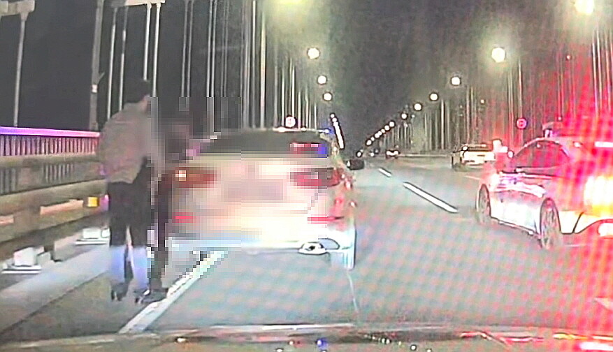 | ▲ 지난 14일 광안대교 상판에서 음주운전자가 검거되고 있는 모습 [부산경찰청 제공] |