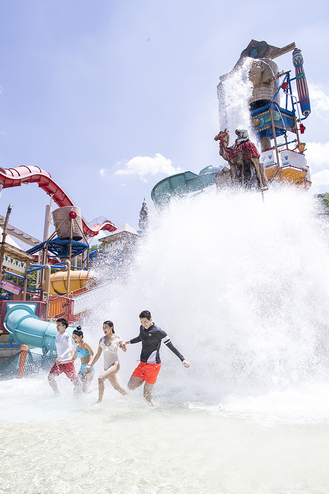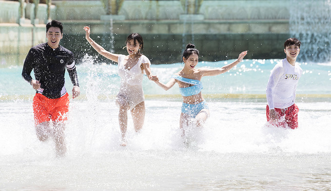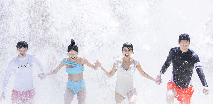 21일 오전 강원도 홍천군 비발디파크 오션월드에서 열린 모델들이 물놀이를 즐기고 있다.