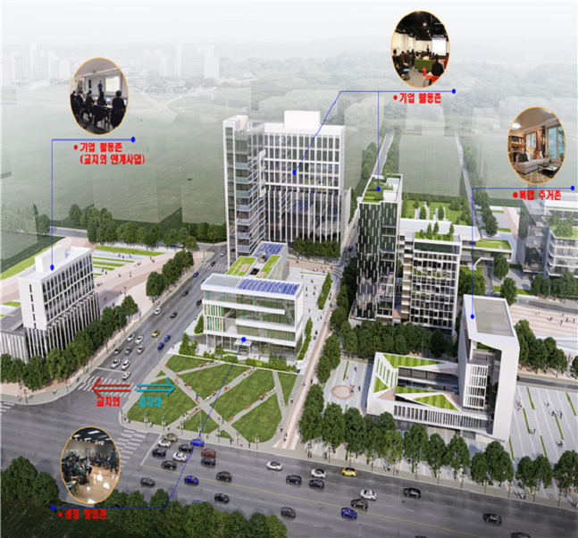 ▲ 교육부와 국토교통부, 중소벤처기업부 장관은 24일 캠퍼스 혁신파크(도시첨단산업단지) 조성을 위한 관계기관 업무협약을 체결한다. 사진은 캠퍼스 혁신파크 조감도 [교육부 제공]