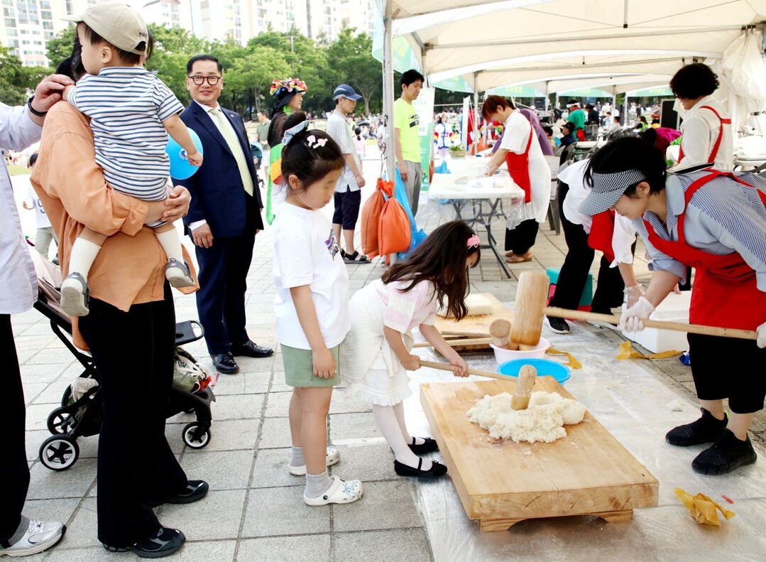 | ▲ 떡메치기 체험을 하는 아이들.[안양시 제공] |