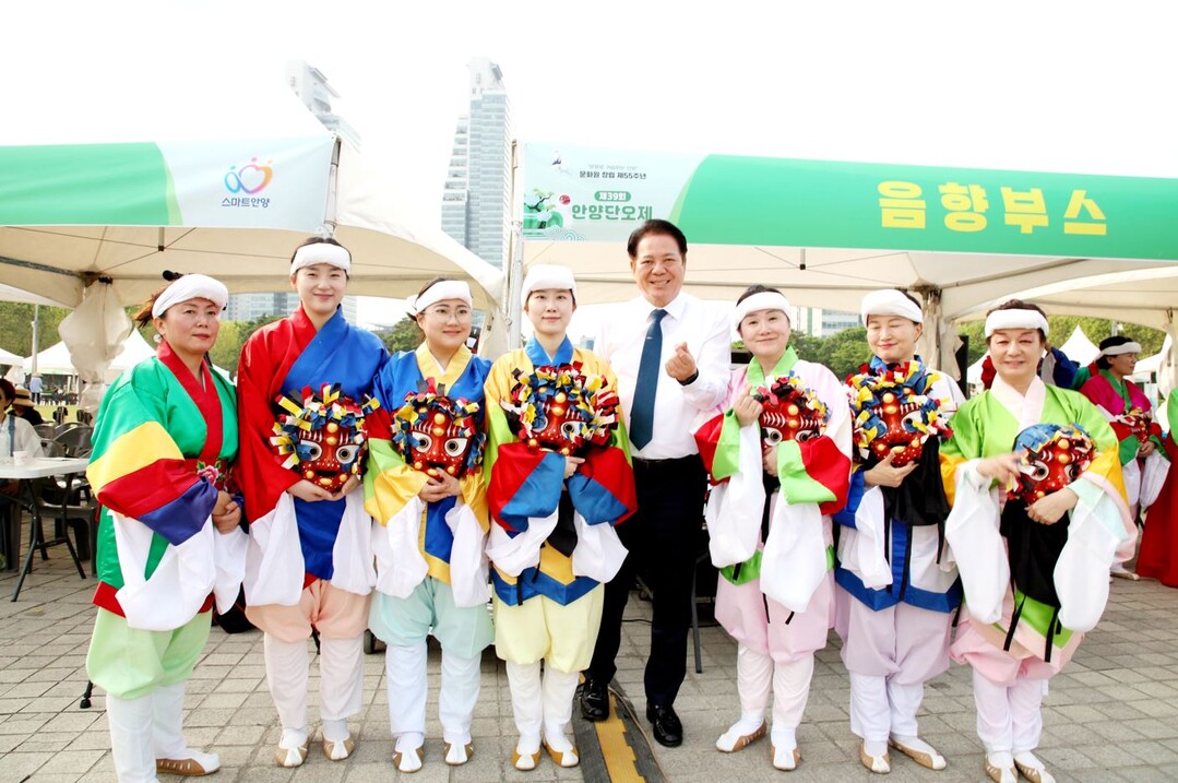 | ▲ 최대호 안양시장과 봉산탈춤 공연자들.[안양시 제공] |