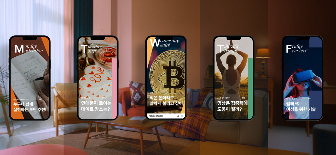 이 플랫폼은 동기부여·관계·금융·테라피·펨테크 등 다양한 주제의 콘텐츠를 요일별로 제공한다. 앱 설치나 구독료 없이 웹에서 누구나 무료로 이용할 수 있다.