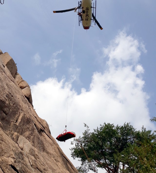 ▲  등산 중 부상자가 헬기로 수송되는 모습. 이 사진은 기사와 관련이 없다. [뉴시스 자료사진]