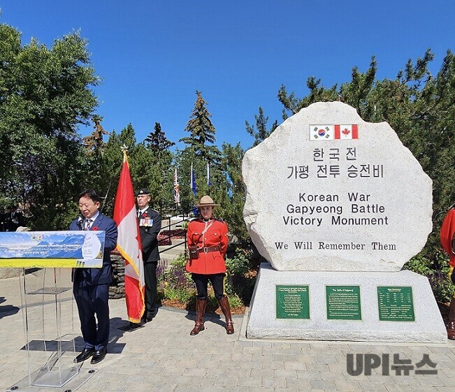 ▲ 서태원 가평군수가 지난 7월 캐나다 캘거리에서 가평전투승전비를 제막하는 모습 [가평군 제공]