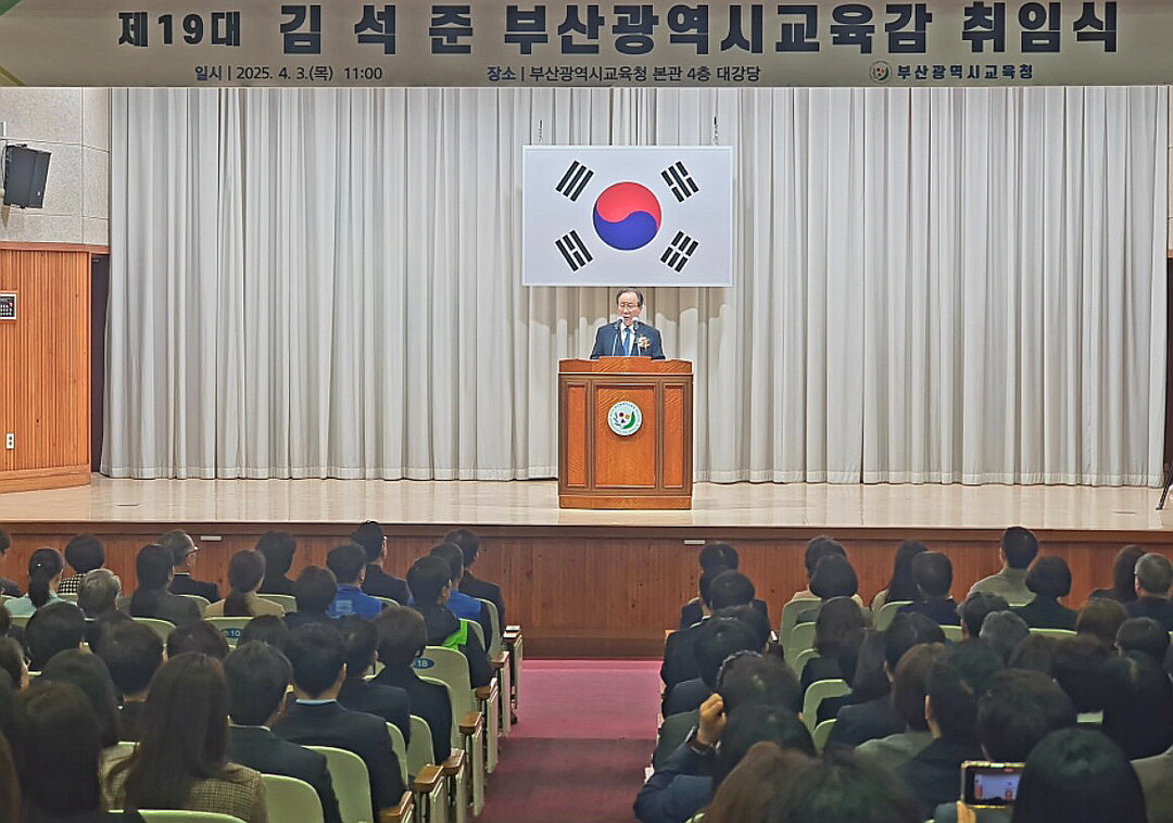 김 교육감은 이날 취임식에서 "교육청을 떠난 지 꼭 34개월 만에 다시 돌아왔다"며 "세 번째 임기를 시작한다는 기쁨보다 부산교육을 이끌어가야 할 막중한 책임감으로 어깨가 무겁다"고 말했다.