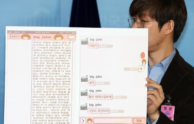 특히 손 의원은 A씨와 전명규 교수 사이에 오간 문자를 기자회견 도중 공개했다. 그는 "전명규 교수가 A씨의 성추행 또는 성폭행 정황도 거의 알고 있지 않았나 의심을 갖게 만드는 중요한 문자"라면서 "(전 교수가) 피해자로부터 충분히 성폭행 사실을 인지했지만 아무런 조치를 취하지 않았고, 가해자는 아직 빙상계 활동 중"이라고 지적했다.