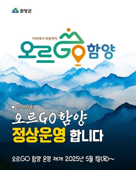 경남 함양군은 산불 예방을 위해 한시 중단했던 산악 완등 인증사업 '오르GO 함양'을 5월 1일부터 본격 재개한다고 30일 밝혔다.