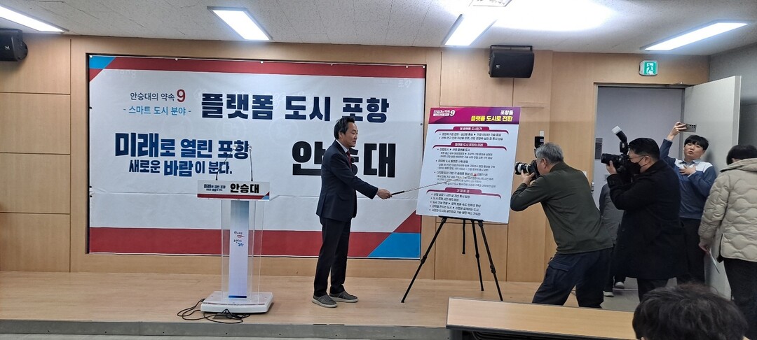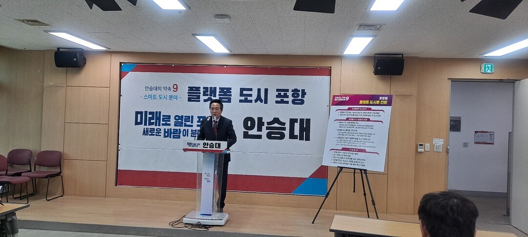안승대 포항시장 예비후보는 26일 포항은 동해를 통해 미래로 열린 항구라며, "포항을 산업 중심 도시에서 산업·기술·데이터·인재가 연결되는 '플랫폼 도시'로 전환하겠다"는 비전을 발표했다.