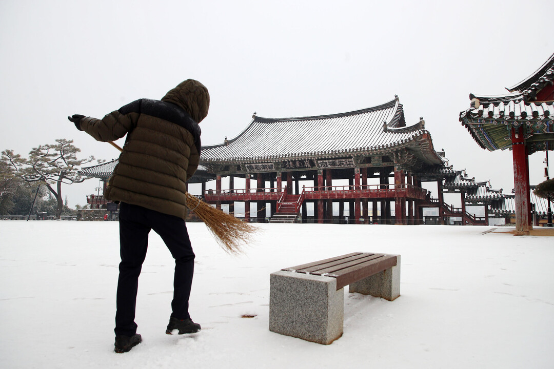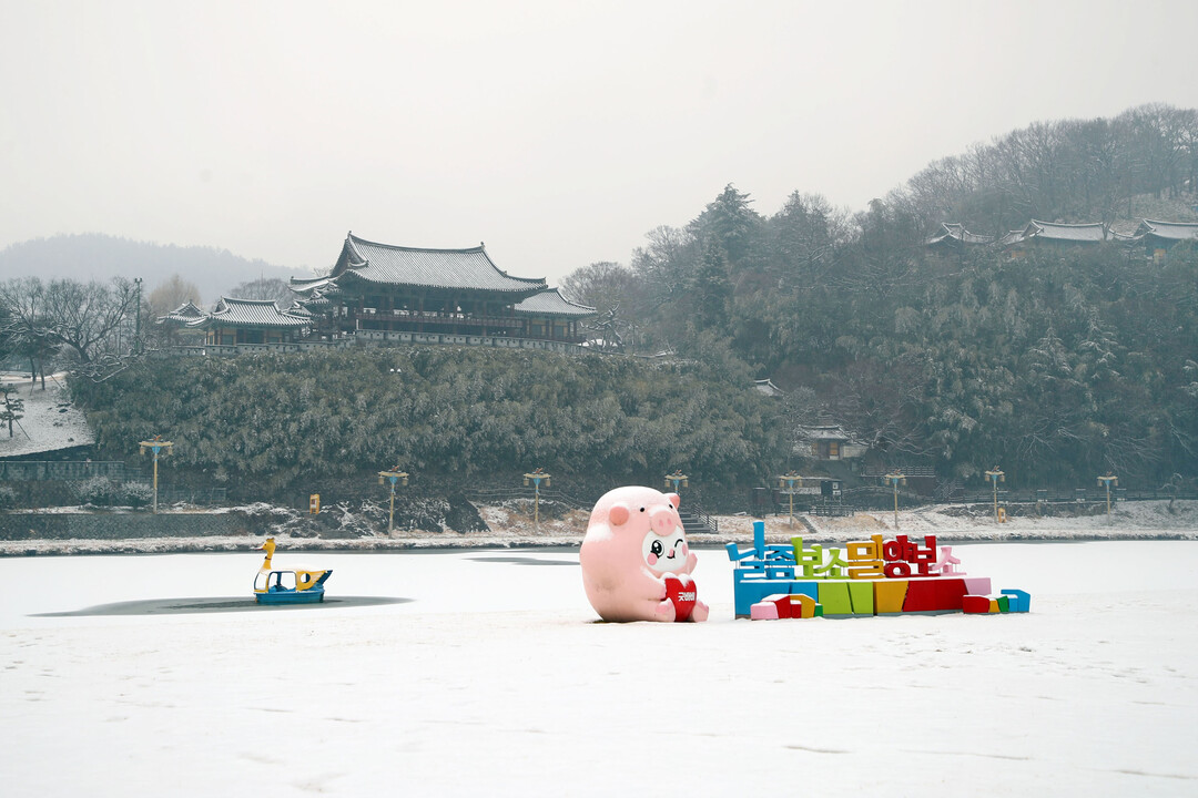 ▲ 밀양 영남루에 눈이 쌓여 있는 모습 [밀양시 제공]