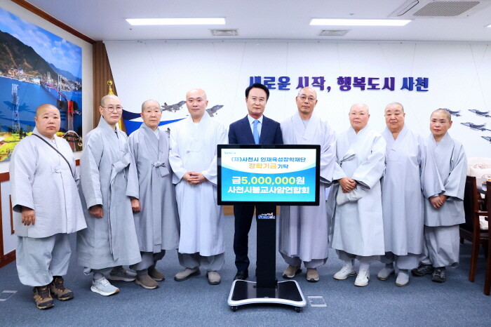 경남 사천시 불교사암연합회(회장 해일스님, 달마사 주지)는 부처님 오신 날을 앞두고 21일 사천시인재육성장학재단에 장학기금 500만원을 전달했다.