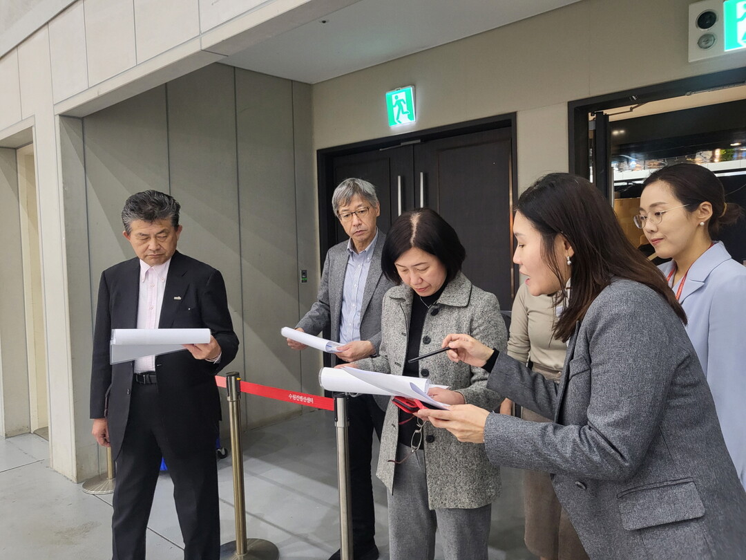 | ▲ 6일 ITS 아태 사무국 관계자들이 수원컨벤션센터를 둘러보고 있다. [수원시 제공] |