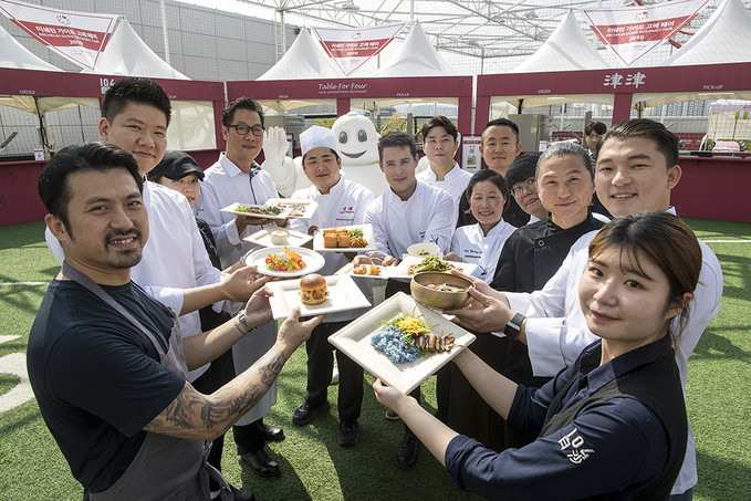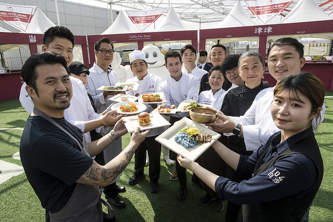 4일 오전 서울 용산구 용산아이파크몰 야외풋살장에서 열린 '미쉐린 가이드 고메 페어 2019'에 참가한 셰프들이 요리를 선보이고 있다.