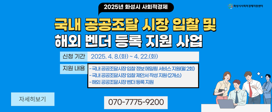 화성시 사회적경제지원센터가 주관하는 이 사업은 사회적 경제기업이 국내 공공조달시장에 입찰하고 해외 조달 벤더(공급업체)로 등록할 수 있도록 돕기 위한 것이다.