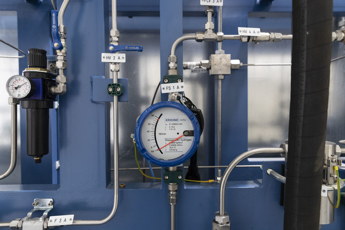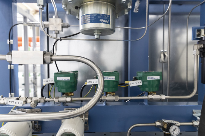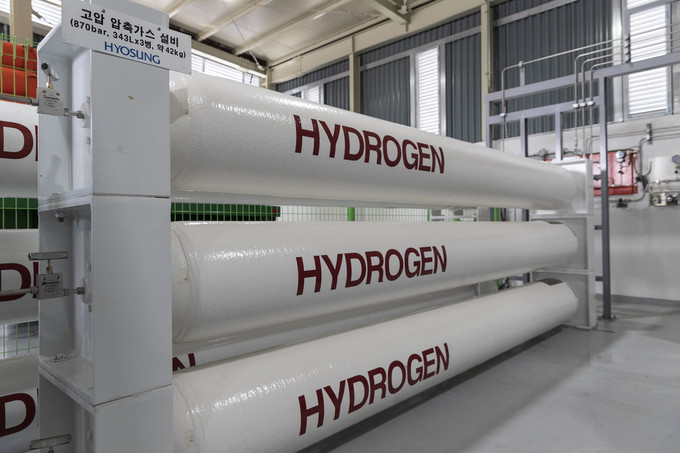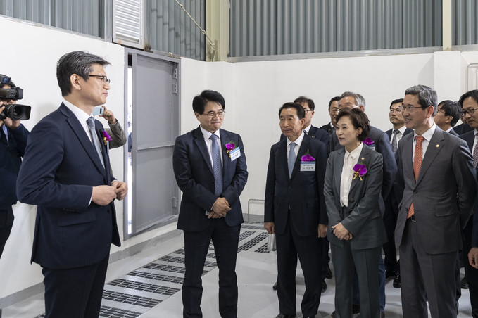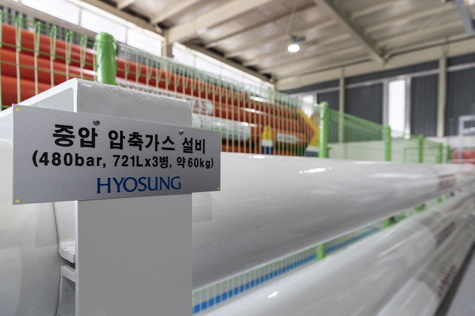 수소차 충전소 기계실 둘러보는 김현미 장관