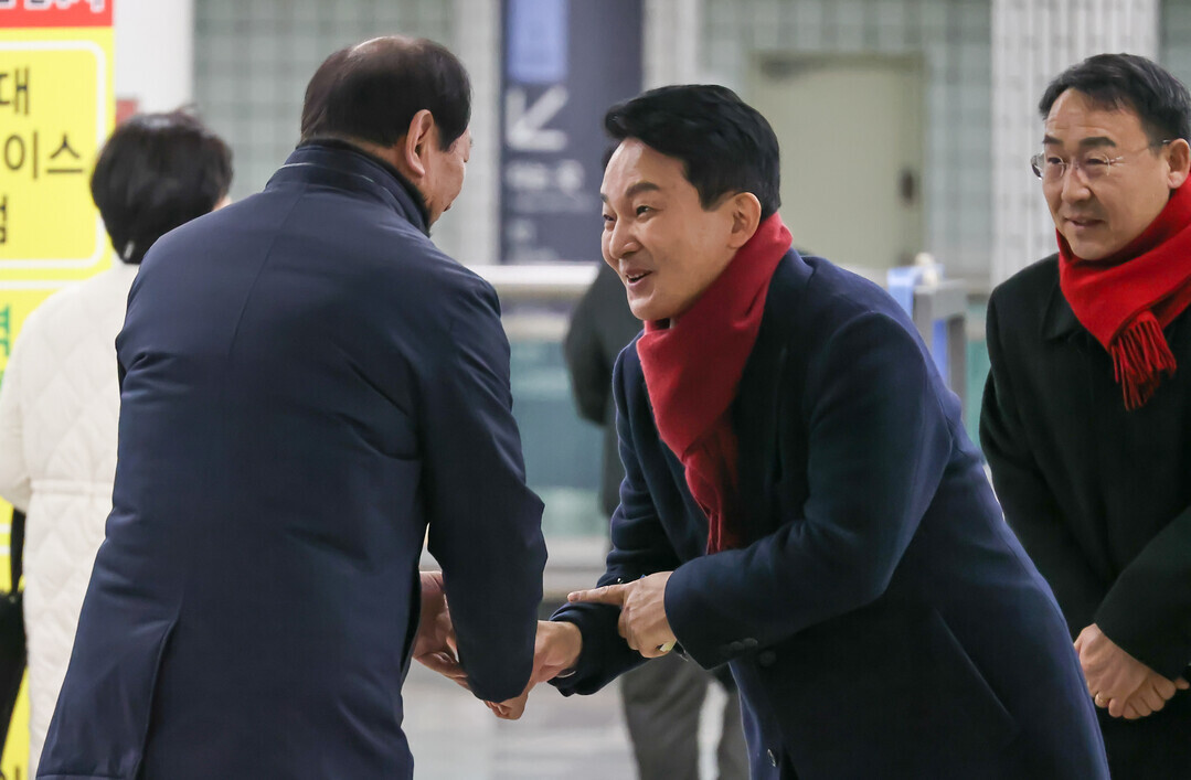 | ▲ 인천 계양을 국민의힘 후보인 원희룡 전 국토교통부 장관이 15일 오전 인천지하철 1호선 박촌역에서 출근길 시민들에게 인사하고 있다. [이상훈 선임기자] |