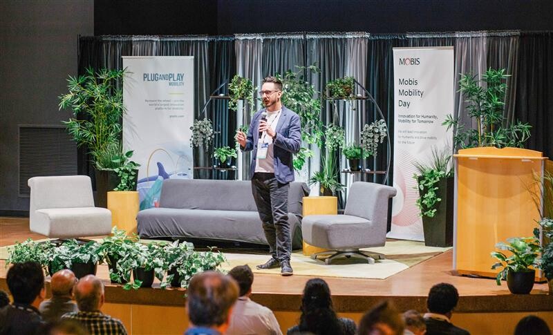 | ▲ 현대모비스 직원이 지난 4월 미국 디트로이트에서 개최한 '모비스 모빌리티 데이'에서 신기술을 발표하고 있다. [현대모비스] |