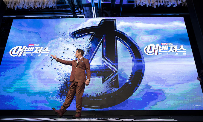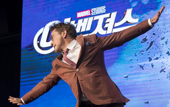 배우 로버트 다우니 주니어가 15일 오전 서울 종로구 포시즌스호텔에서 열린 영화 '어벤져스: 엔드게임' 내한 기자간담회에서 포즈를 취하고 있다.