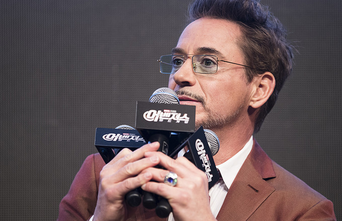 배우 로버트 다우니 주니어가 15일 오전 서울 종로구 포시즌스호텔에서 열린 영화 '어벤져스: 엔드게임' 내한 기자간담회에서 취재진의 질문에 답하고 있다.