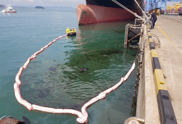 8일 오전 7시 10분께 부산 강서구 신항 4번 선석에서 벙커C유가 바다로 유출됐다.