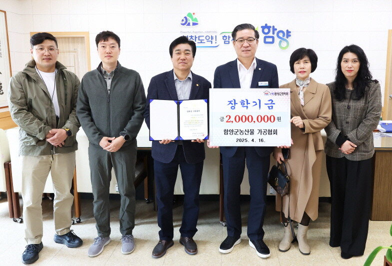 함양군농산물가공협회(회장 하경수)는 15일 '수원메가쇼 2025 시즌1'에 참가한 13개 관내 업체가 뜻을 모아 마련한 수익금 200만원을 재단법인 함양군장학회에 기탁했다.