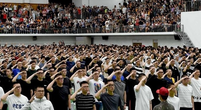 ▲ 지난 7월 경남 창원시 진해구 해군교육사령부에서 열린 해군병 650기·의경 390기 입영식에서 입영장병이 경례하고 있는 모습 [해군 제공]