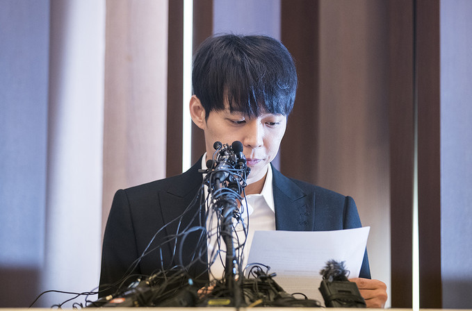 ▲ 남양그룹 창업주 외손녀 황하나(31) 씨의 마약 투약 혐의와 연관 있는 연예인으로 지목된 가수 겸 배우 박유천이 지난 10일 오후 서울 중구 프레스센터에서 열린 긴급 기자회견에서 입장발표를 하고 있다. [정병혁 기자]