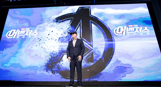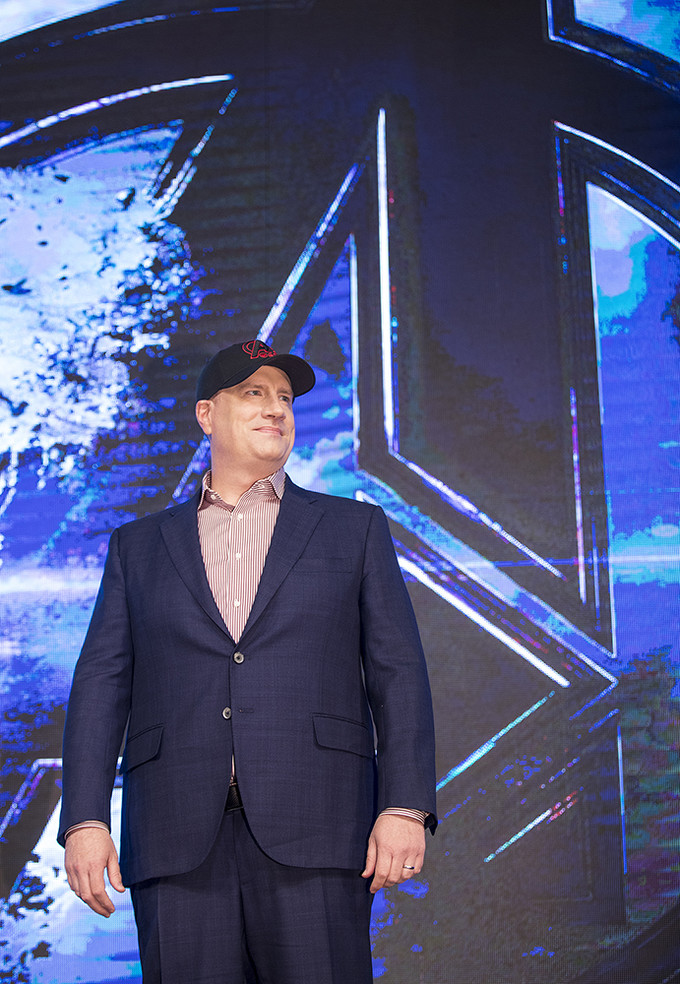 케빈 파이기 마블 스튜디오 대표가 15일 오전 서울 종로구 포시즌스호텔에서 열린 영화 '어벤져스: 엔드게임' 내한 기자간담회에서 포즈를 취하고 있다.