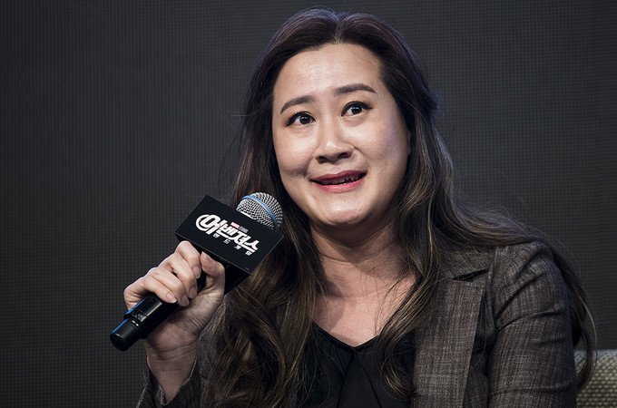 트린 트랜 프로듀서가 15일 오전 서울 종로구 포시즌스호텔에서 열린 영화 '어벤져스: 엔드게임' 내한 기자간담회에서 포즈를 취하고 있다.