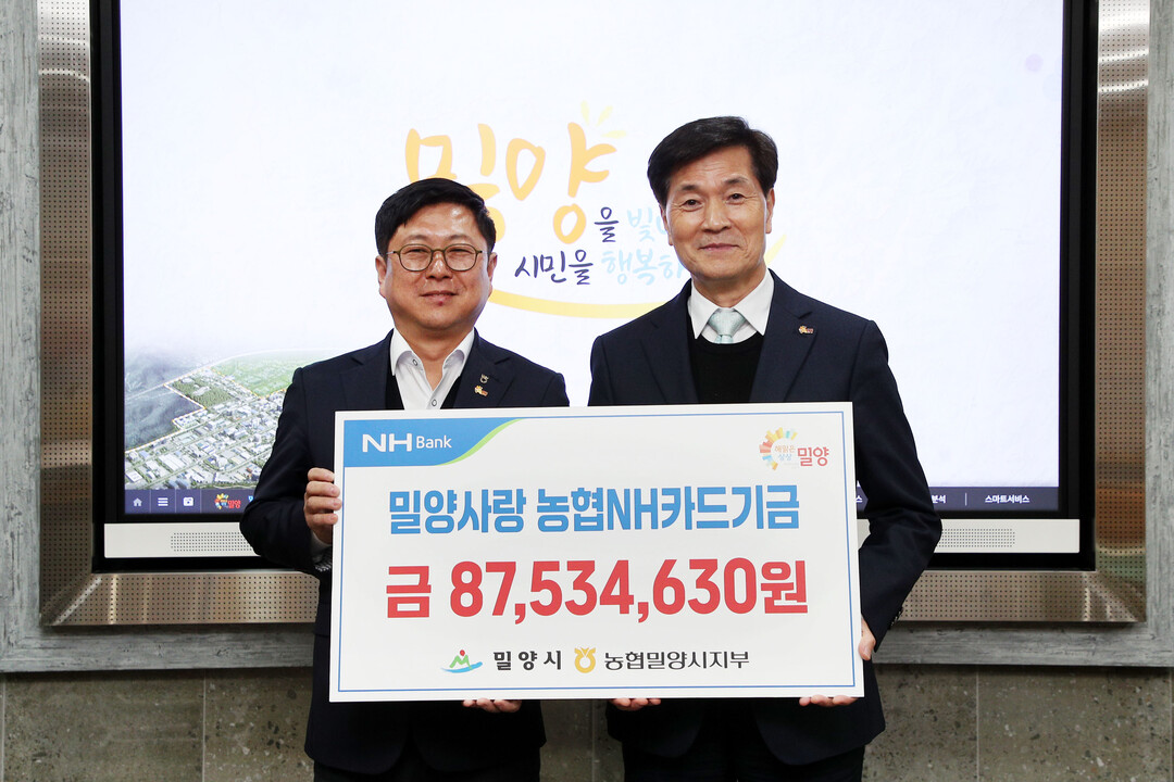NH농협은행 경남 밀양시지부(지부장 권태원)는 24일 제휴카드 적립 기금 8753만 원을 밀양시에 전달했다.