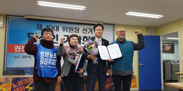 그는 지난 5~7일 전국 조합원을 대상으로 진행된 선거(투표율 77.72%)에서 51.53%의 득표율(개표율 99.23% 기준)로 당선됐다. 권 당선인은 러닝메이트인 김현진(45·전남지부장) 수석부위원장 당선인과 함께 내년 1월1일부터 2020년 12월31일까지 전교조를 이끈다.