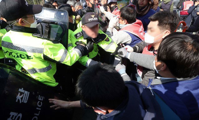 경찰에 따르면 이들은 국회 진입을 시도하는 과정에서 경찰과 충돌했고 국회 철제 담장을 무너뜨리기도 했다.