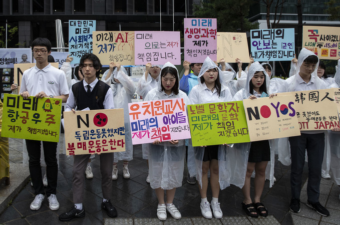이들은 성명을 통해 "일본은 어떤 이유도 대지 말고 경제보복을 중단하라"면서 "만약 일본이 반성하지 않는다면 지금 고등학생인 우리 세대가 기성세대가 되는 그때까지 일본 상품 불매운동을 이어갈 것"이라고 말했다.